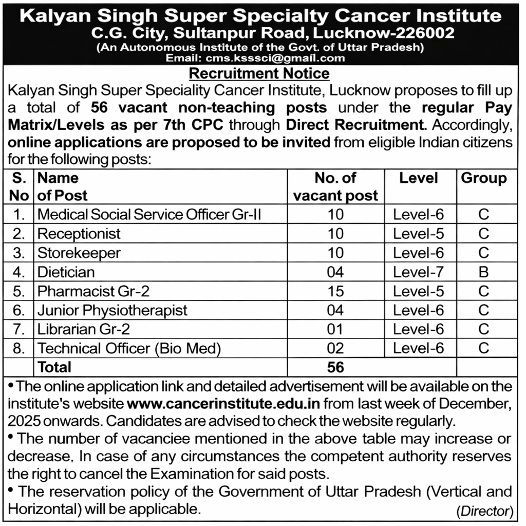 Kalyan Singh Hospital Vacancy 2026 – Apply Online for 56 Non-Teaching Posts Read Post »