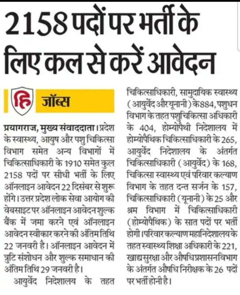 The Uttar Pradesh Public Service Commission (UPPSC) has officially released a large-scale recruitment notification for 2158 Medical Officer posts . Eligible candidates can apply online through the UPPSC official website for direct recruitment across multiple health-related departments in Uttar Pradesh.